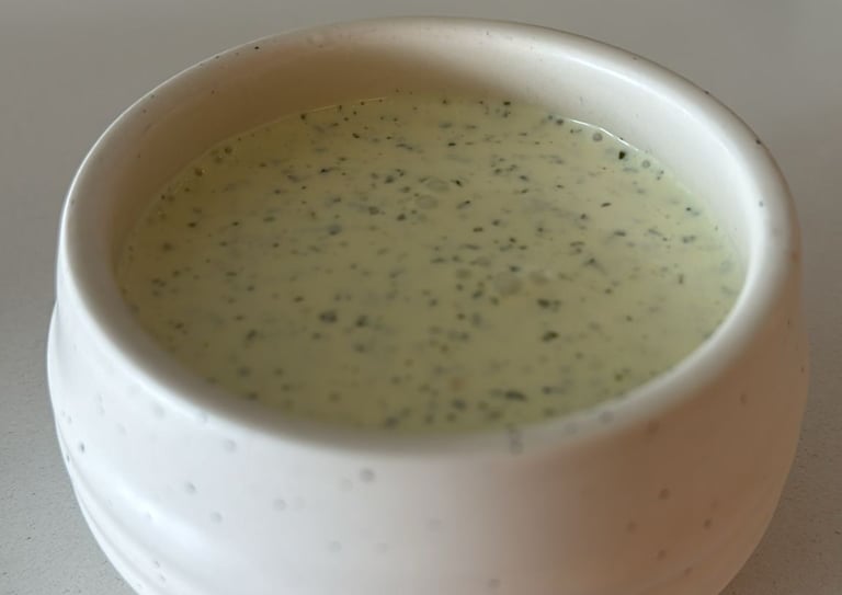 A creamy, slightly spicy homemade ranch dressing that goes amazingly well with french fries, pizza, salads and more!