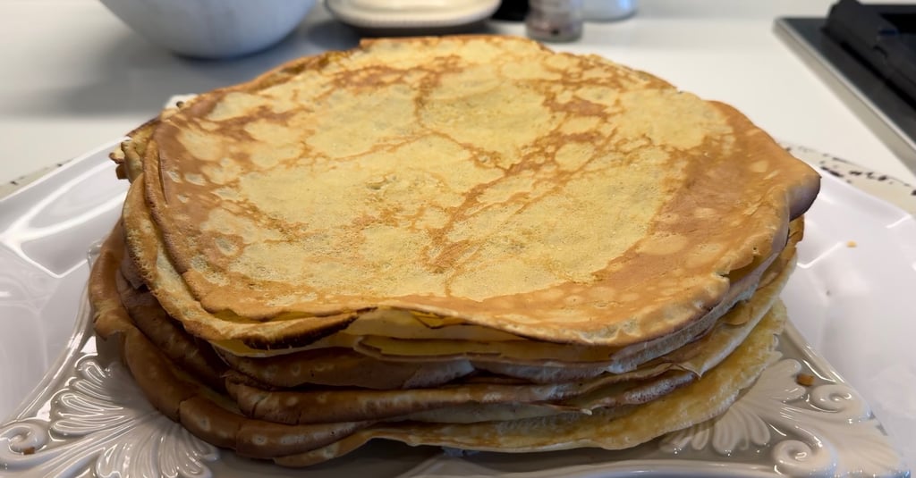 Continue stacking your crêpes on to your platter until all batter is gone.