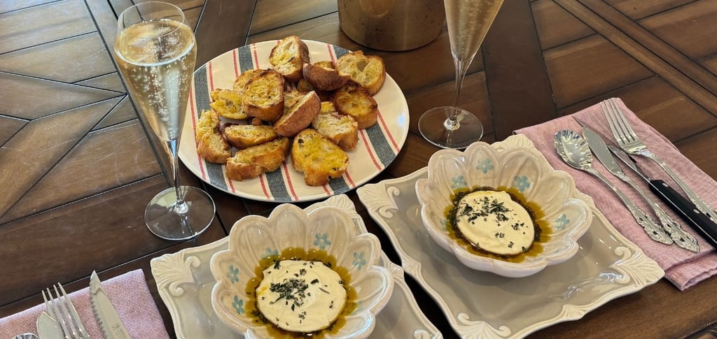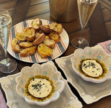 Elevate your appetizer game with this elegant yet simple dish: whipped ricotta served on crispy, grilled baguette slices. This recipe combines the creamy richness of whipped ricotta with lavender infused honey, a touch of extra-virgin olive oil, and the aromatic notes of fresh rosemary. Each bite is a perfect balance of sweet, savory, and herbaceous flavors, topped off with a sprinkle of sea salt. Perfect for a cozy evening in or a gathering with friends, this versatile appetizer pairs beautifully with a glass of champagne. đĽđĽđŻ